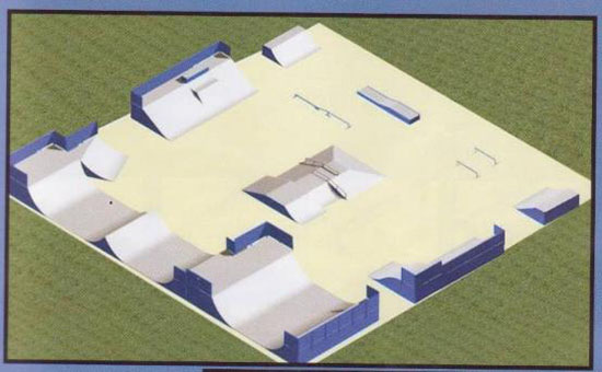 2、中級:弧面出發(fā)臺、斜面出發(fā)臺、弧面拋臺、斜面拋臺、臺階、扶手、金字塔、斷橋、盒子、平桿、小型U池或連體小型U池