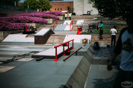 仿照街頭公共設(shè)施,如臺階、扶手、斜坡等所建造的場地。